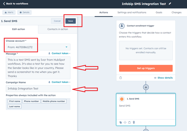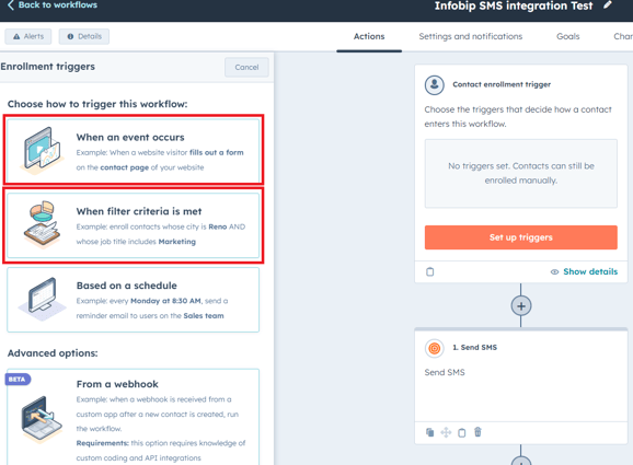 Simple instructions on how to set up workflows in HubSpot that will trigger action of sending an SMS to a contact